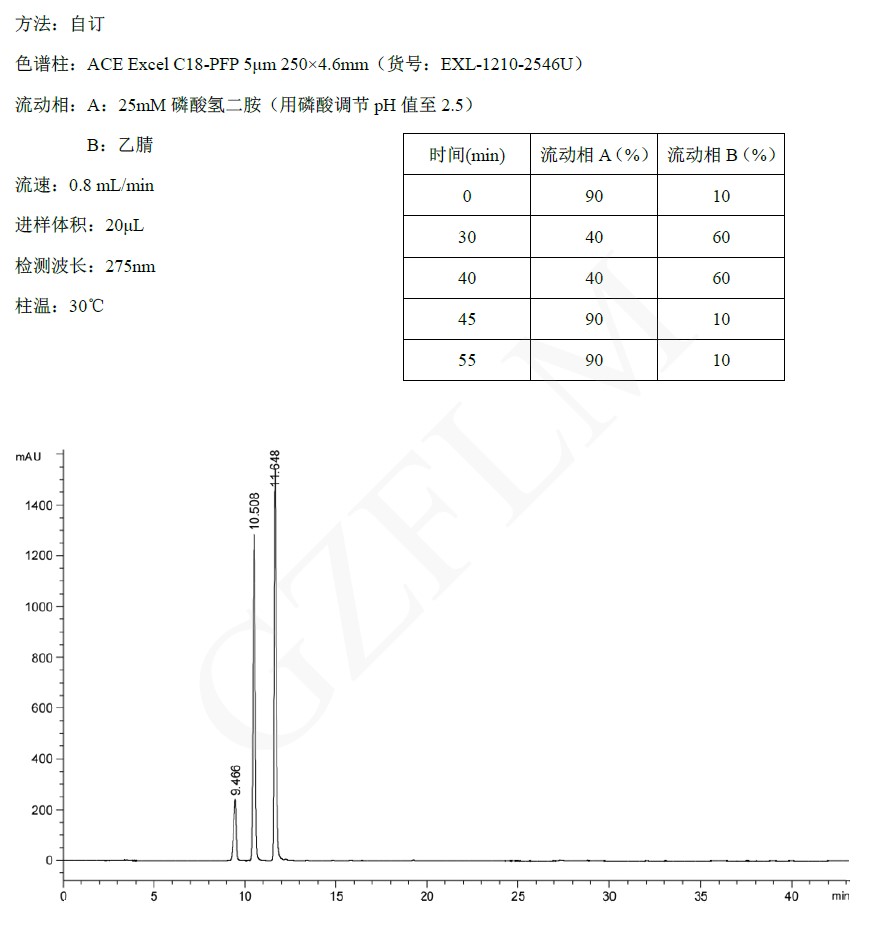 上述應用強調(diào)了五氟苯基(PFP)相在位置異構體分離中的優(yōu)勢,ACE C18-PFP能夠提供很好的保留和分離效果,從而可以進一步優(yōu)化以減少分析時間。
