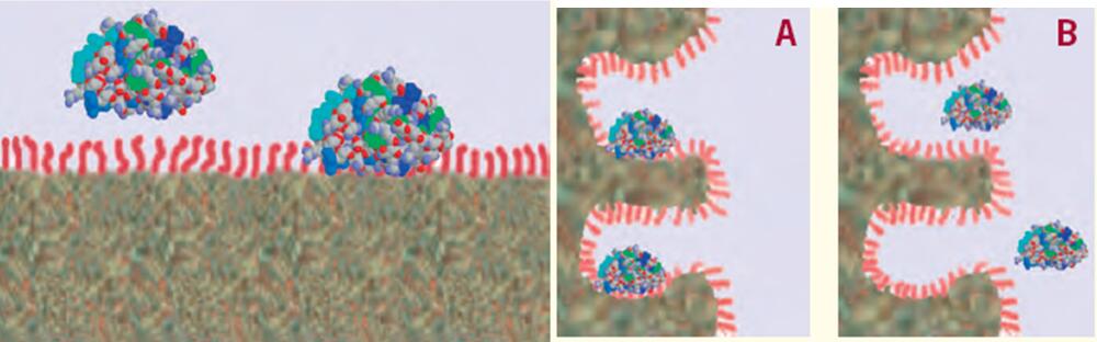 大部分蛋白質(zhì)位于表面上方與流動相接觸(蛋白質(zhì)的大部分是在疏水面之上與流動相接觸)。