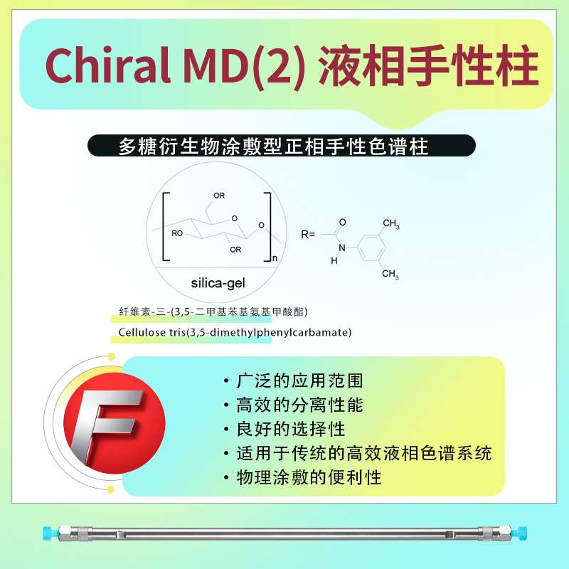 Chiral MD(2)液相手性色譜柱以其優秀的分離能力和耐受性而著稱,是世界上使用范圍最廣的一種手性填料之一。其性能特點可能包括: