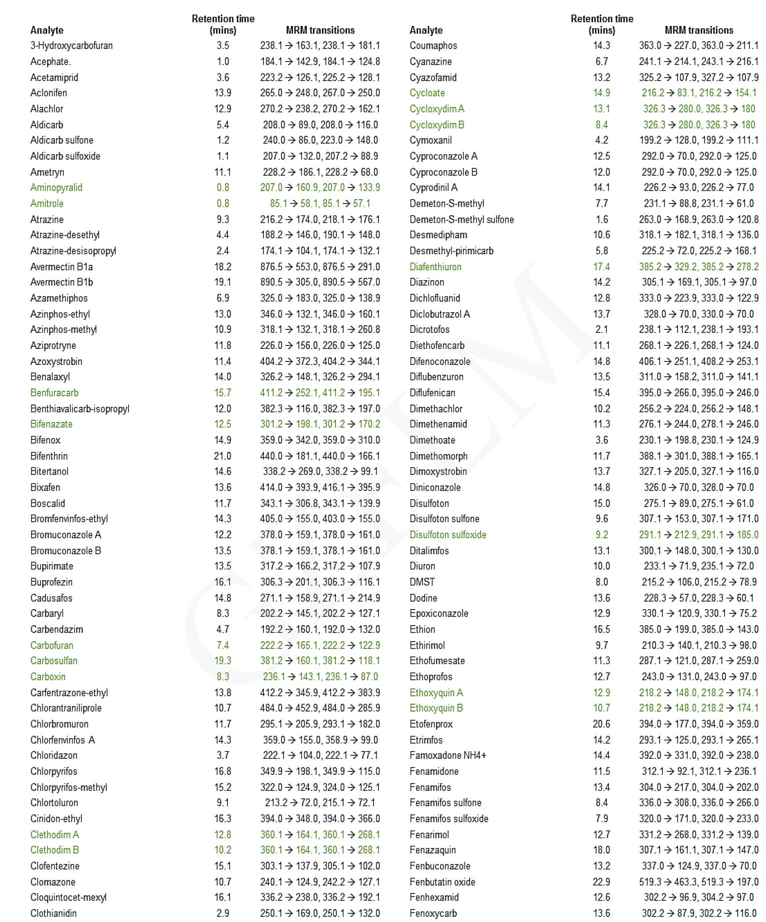 300 種農藥的 LC-MS-MS 方法