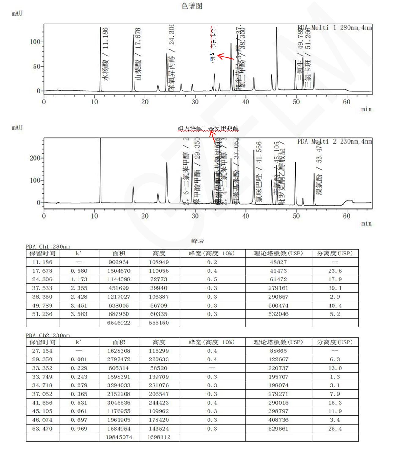 檢測(cè)波長(zhǎng):280 nm;230 nm