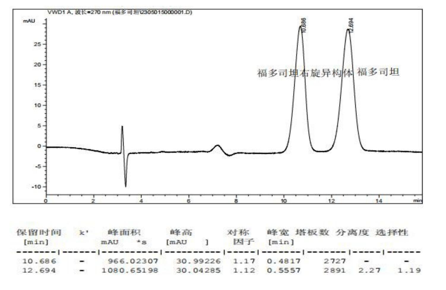 手性HPLC是目前最常用的手性分離方法之一。福多司坦及其右旋異構(gòu)體可以被固定相為手性固定相的色譜柱有效地分離。手性固體相主要有兩種類型:手性小分子和手性高分子。