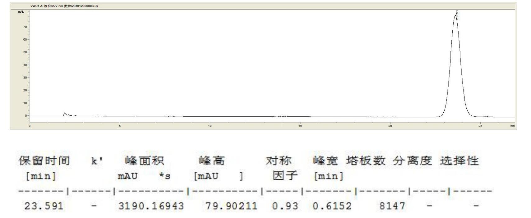 檢測器:UV 277nm