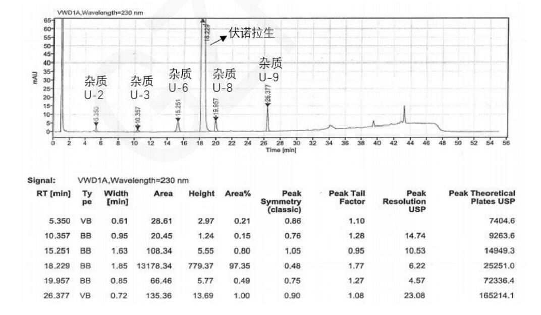 客戶評(píng)價(jià):采用該款色譜柱對(duì)富馬酸伏諾拉生片按照進(jìn)口注冊(cè)標(biāo)準(zhǔn)方法進(jìn)行檢測(cè),能完全滿足檢測(cè)的要求。