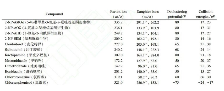 App ID: FLM-T240003 (甲硝唑氯霉素氯丙嗪克侖特羅沙丁胺醇等) 色譜柱:Titank C18 3u 100*2.1mm 貨號:FMD-5559-BONU 流動相:A 乙腈 B 0.1%甲酸 流速:0.3ml/min 進樣體積:5 μL 柱溫:40℃