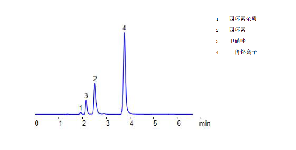 App ID: FLM-C250008 Comixsil HAX 對藥物制劑中三價(jià)鉍離子的HPLC-UV 法直接檢測 色譜柱:Comixsil HAX 3u 100*3.0mm(貨號:FMD-HAX3-YONU) 流速:0.5 mL/min 檢測:260nm 樣品濃度:1 mg/mL 進(jìn)樣量:5 μ 溶劑:水 流動相:乙腈:水:100mM 甲酸銨(pH4.1,含0.04mg/ml EDTA)=7:78:15