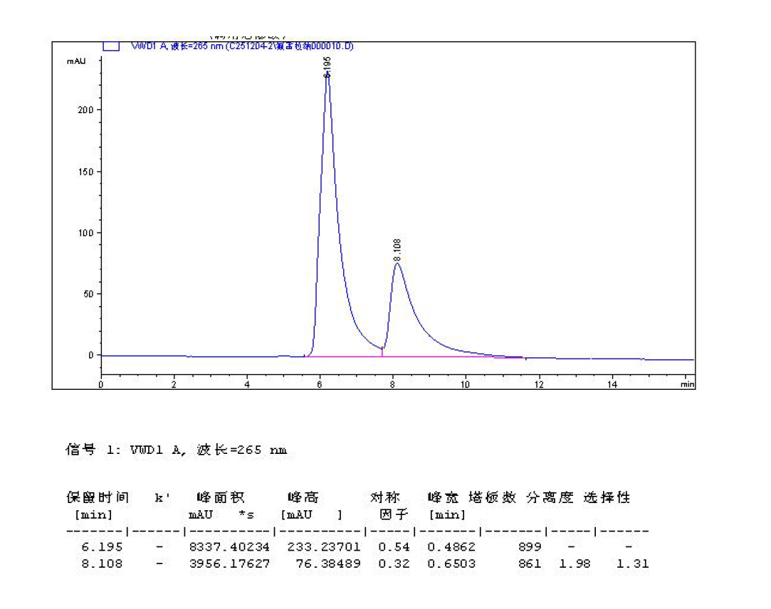 色譜柱:Chiral ND(2) 5μ 250*4.6mm( 貨號:FMG-AC5-A01-NFC) 流動相及色譜條件:咨詢