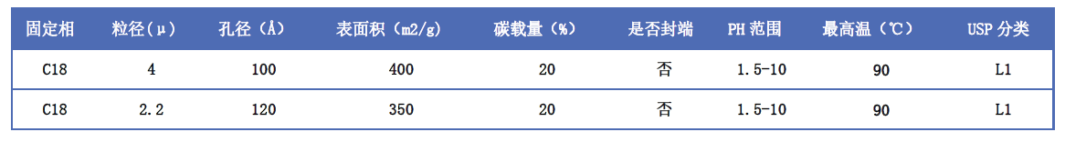 采用獨(dú)特鍵合技術(shù),將直鏈 C18直接獨(dú)立的雙位點(diǎn)鍵合于Si-H鍵上直接形成Si-C鍵的C18鍵合相。增加了穩(wěn)定性與壽命。