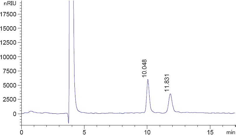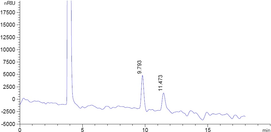 圖 2. 菲羅門MerCury NH2 乳糖專用柱在開放的環(huán)境下色譜結(jié)果