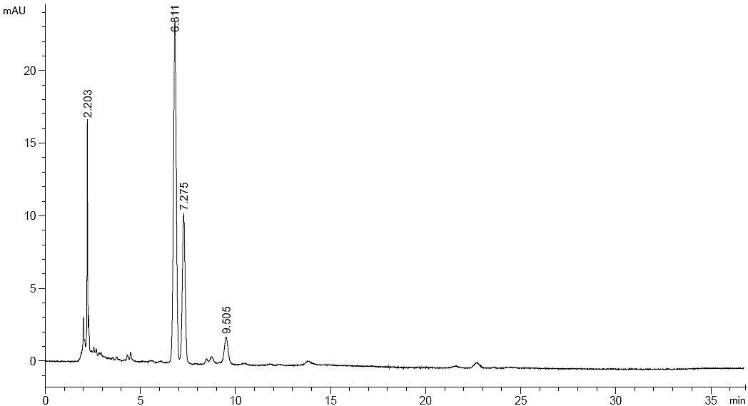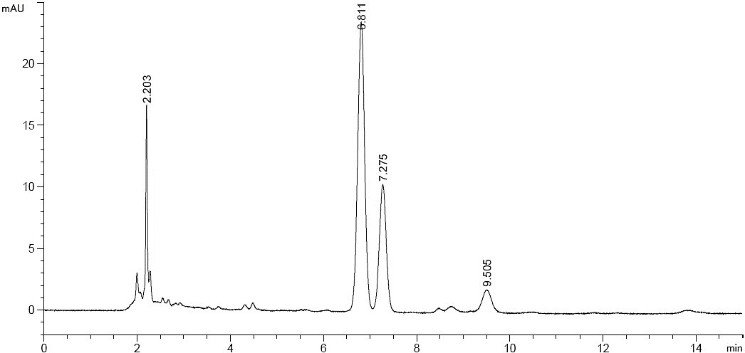 色譜柱:ACE Excel SuperC18 5μm 250×4.6mm(貨號(hào):EXL-1211-2546U)