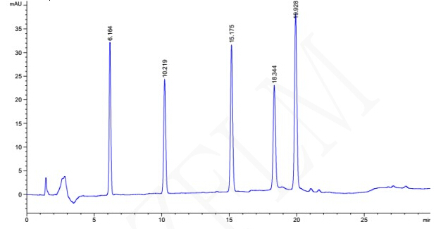 色譜柱:Titank F5 5μm 250×4.6mm(貨號:FMG-5565-EONU) 檢測波長:227 nm